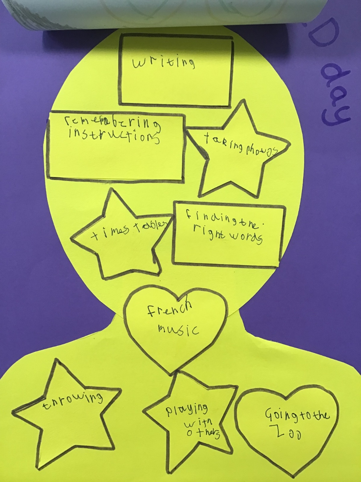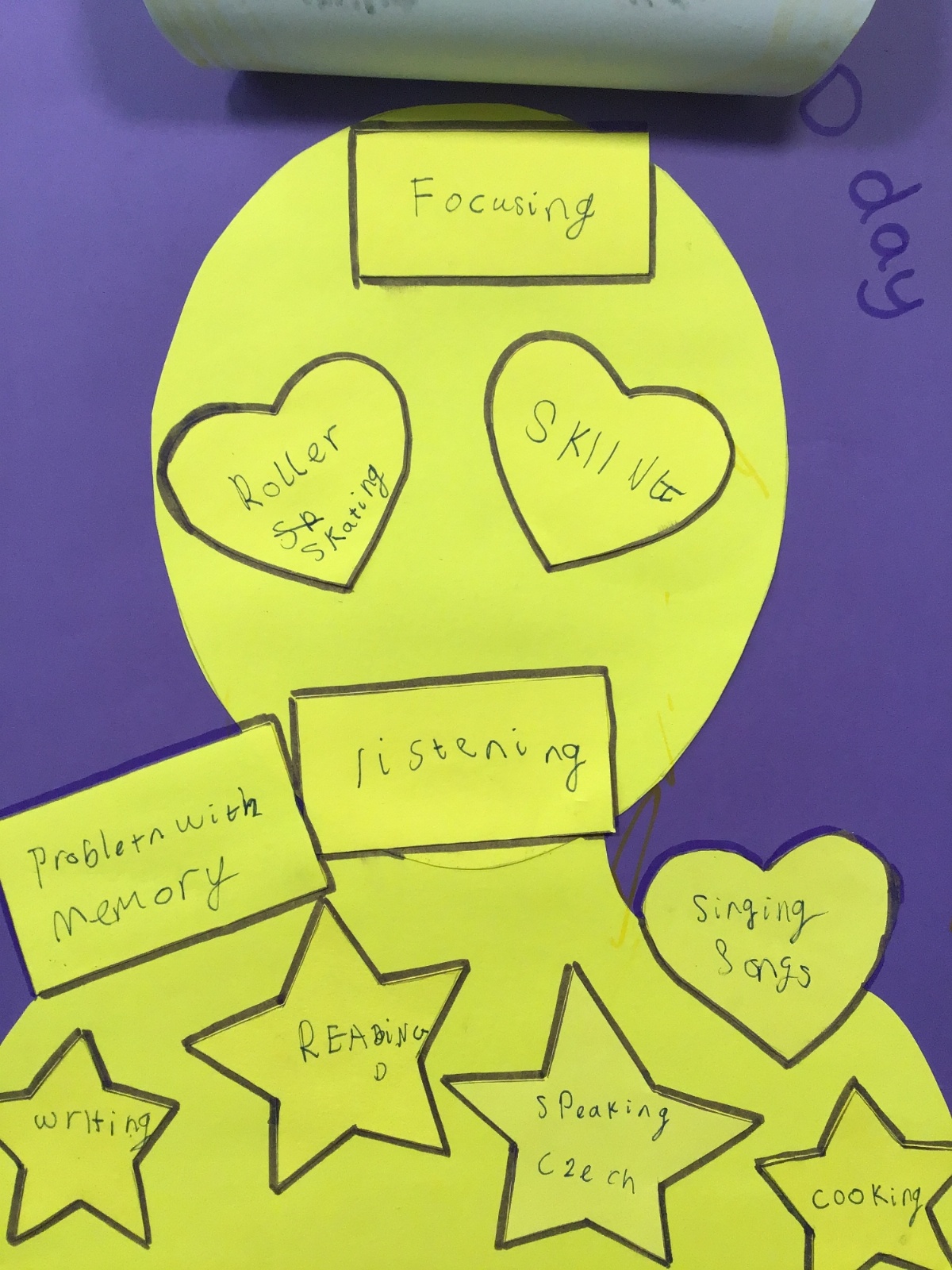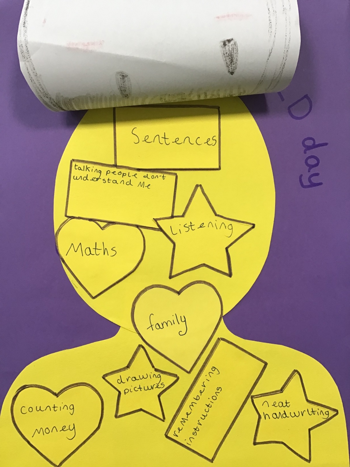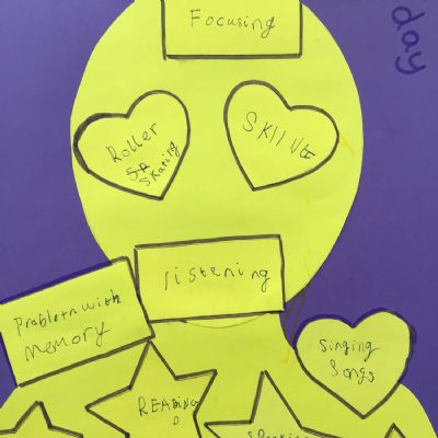 We marked Developmental Language Disorder (DLD) Awareness Day, using the international theme 'You Can't See DLD', by creating posters of ourselves and then sharing some of the things we love (in the heart shapes), the things we're superstars at (in the star shapes) and some of the things that we find challenging, but that you can't always see.